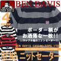 BEN DAVIS セーター ベンデイビス セーター ★ ボーダー柄 ベンデービス ニットセーター メンズ セーター 胸元のブランドタグがワンポイント。ワッフル地の生地感がカジュアルコーデにピッタリなベンデビのデータ―です。BEN-1025