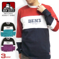 ベンデイビスの長袖Tシャツ。3色の配色デザインがコーデに映える。BENDAVISのお洒落なメンズロンT。フロントにBENSの英文字プリント。裾部分のゴリラアイコンタグがアクセントになったメンズクルーネックTシャツ。BEN-1220