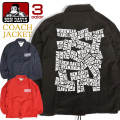 ベンデイビスのコーチジャケット。ロゴテープを散りばめたようなデザインのインパクト抜群のバックプリントがかっこいいナイロンジャケット。裏地付きで肌寒い季節にちょうどいい生地感のメンズライトアウターアイテム。BEN-1246