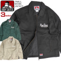 BEN DAVIS ジャケット。胸元のチェーン刺繍になったブランドロゴがワンポイント。ツイル地の光沢感のあるボディがかっこいいメンズ アウター。インナーの上から羽織るだけでもお洒落なベンデイビスのワークジャケット。BEN-1295