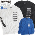 STARTERのボディを使用したスラッシャーの長袖 ロゴプリントTシャツ。THRASHERのマグロゴが胸元に並べてプリントされたデザインがインパクト抜群。右袖のSTARTERのロゴプリントがかっこいいメンズロンT。THRASHER-057