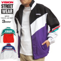 切り替えデザインがスポーティーな印象。VISIONのトラックジャケット。ストリートコーデのアクセントになるインパクトあるメンズナイロンジャケット。胸元と背中にVISIONのプリント入り。ヴィジョンのジャージアイテム。VISION-048