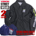 VISION STREET WEAR コーチジャケット。胸元、左袖、背中にブランドロゴプリント入りのメンズジャケット。裏地はメッシュ仕様。これ一枚を羽織るだけでストリート系のコーデがカッコ良くキマるヴィジョンのライトアウター。VISION-125